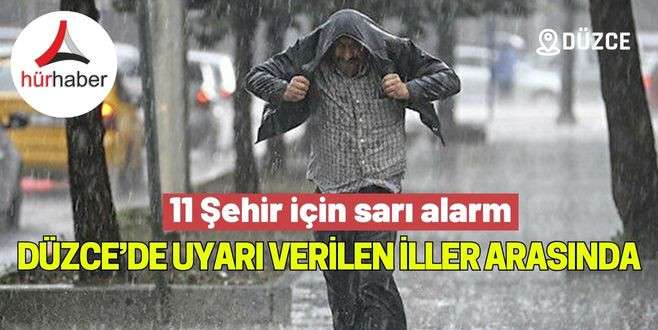 Meteoroloji Genel Müdürlüğü'nün yeni hava durumu raporuna göre aralarında Düzce’nin de bulunduğu 11 şehir için sağanak yağış uyarısı yapıldı. Uyarının ardından İstanbul, Ankara ve İzmir başta olmak üzere Eskişehir, Bolu, Düzce, Sinop, Artvin, Ankara, Balıkesir, Rize, Artvin çevreleri, Çanakkale ve Trabzon'un doğusu ile Bursa'nın güney kesimleri için sarı alarm verildi.