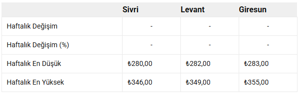 Fiyatlar Fındık TV'den alınmıştır. SAAT BİLGİSİ 09:20 İTİBAREN ALINAN BİLGİ