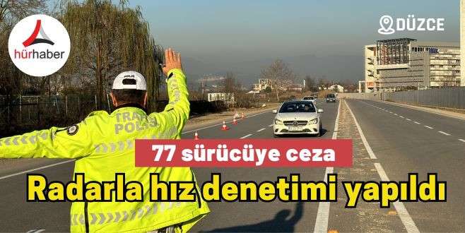 Düzce'de trafik polisleri tarafından radarla hız denetimi yapıldı. Denetimlerde 77 araç sürücüsüne 148 bin 584 lira ceza kesildi.