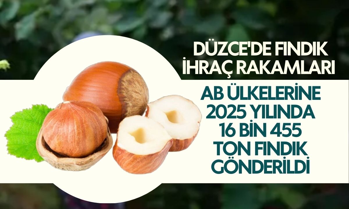 Düzce'den Avrupa Birliği (AB) ülkelerine 2025 yılında ayda 16 bin 455 ton iç fındık ihraç edildi.