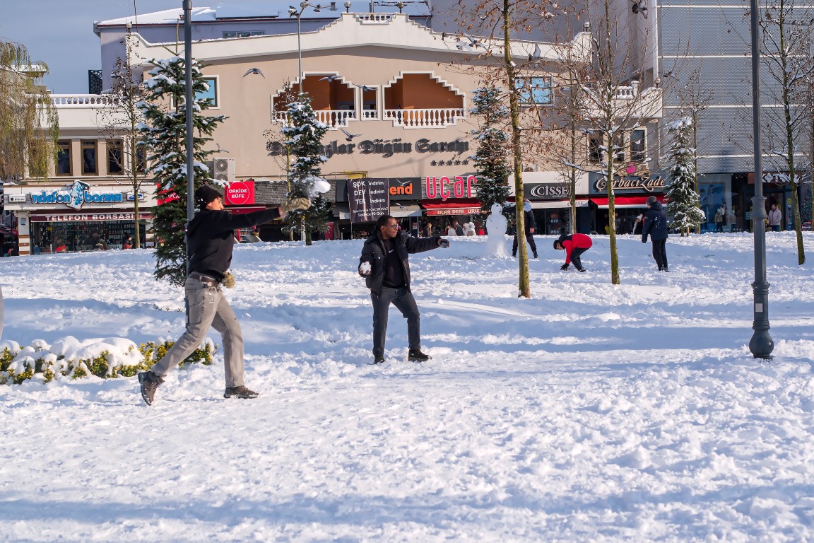 Sri Lanka ve Ruanda gibi tropikal iklim ülkelerinden eğitim için kente gelen öğrenciler, hayatlarında ilk kez gördükleri kar karşısında şaşkınlıklarını gizleyemedi.Kent genelinde etkisini sürdüren yağışla birlikte kar kalınlığı şehir merkezinde 20, Konuralp ve Bahçeşehir bölgelerinde ise 40 santimetreye ulaştı. Kar yağışı çocuklar kadar memleketlerinden binlerce kilometre uzaktaki üniversite öğrencilerini de mutlu etti.