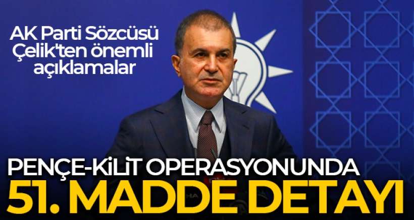 AK Parti Sözcüsü Ömer Çelik, "Türkiye, Pençe-Kilit operasyonunu BM'nin 51. maddesine dayanarak yapıyor. Bu tabi terör örgütünün tespit edildiği hazırlıklar üzerine gerçekleştirilen bir harekattır" dedi.