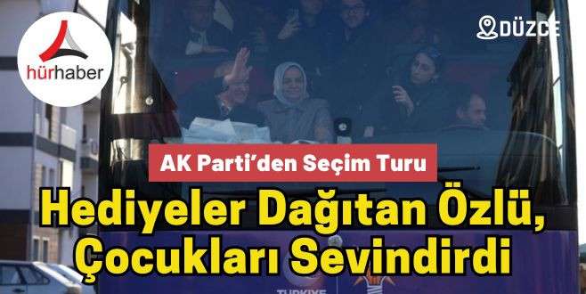 Düzce Belediye Başkanı ve AK Parti Belediye Başkan Adayı Dr. Faruk Özlü ile AK Parti Genel Merkez Kadın Kolları Başkanı ve Düzce Milletvekili Ayşe Keşir seçim turuna çıktı. Seçim otobüsü ile mahalleleri dolaşan Özlü ve Keşir, vatandaşları selamladı, çocuklara hediyeler dağıttı. Aday adaylığı sürecini halkla iç içe geçiren Düzce Belediye Başkanı ve AK Parti Belediye Başkan Adayı Dr. Faruk Özlü, gün boyu birçok ziyaret gerçekleştiriyor. Vatandaşların sorun ve sıkıntılarını dinleyen Özlü, yeni dönemde hayata geçireceği projeleri de anlatıyor. Ziyaretlerinde her kesimden vatandaşın teveccühü ile karşılanan Özlü, AK Parti Genel Merkez Kadın Kolları Başkanı ve Düzce Milletvekili Ayşe Keşir ile birlikte iftar öncesi seçim otobüsü ile kısa bir şehir turu yaptı. Vatandaşları selamlayan Özlü ve Keşir’e, vatandaşlar da el sallayarak yanıt verdi. Bazı yerlerde sevgi gösterileri karşısında otobüsten inen Özlü, vatandaşlarla buluştu, çocuklara hediyeler verdi.
