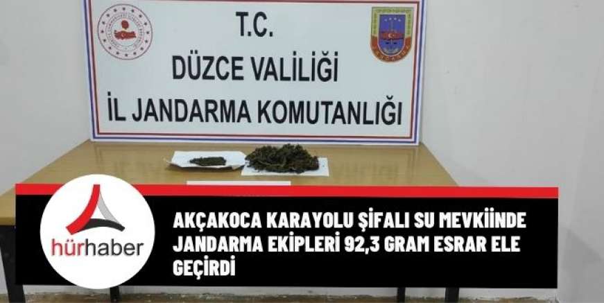 Akçakoca karayolu Şifalı Su mevkiinde Jandarma ekipleri 92,3 gram esrar ele geçirdi