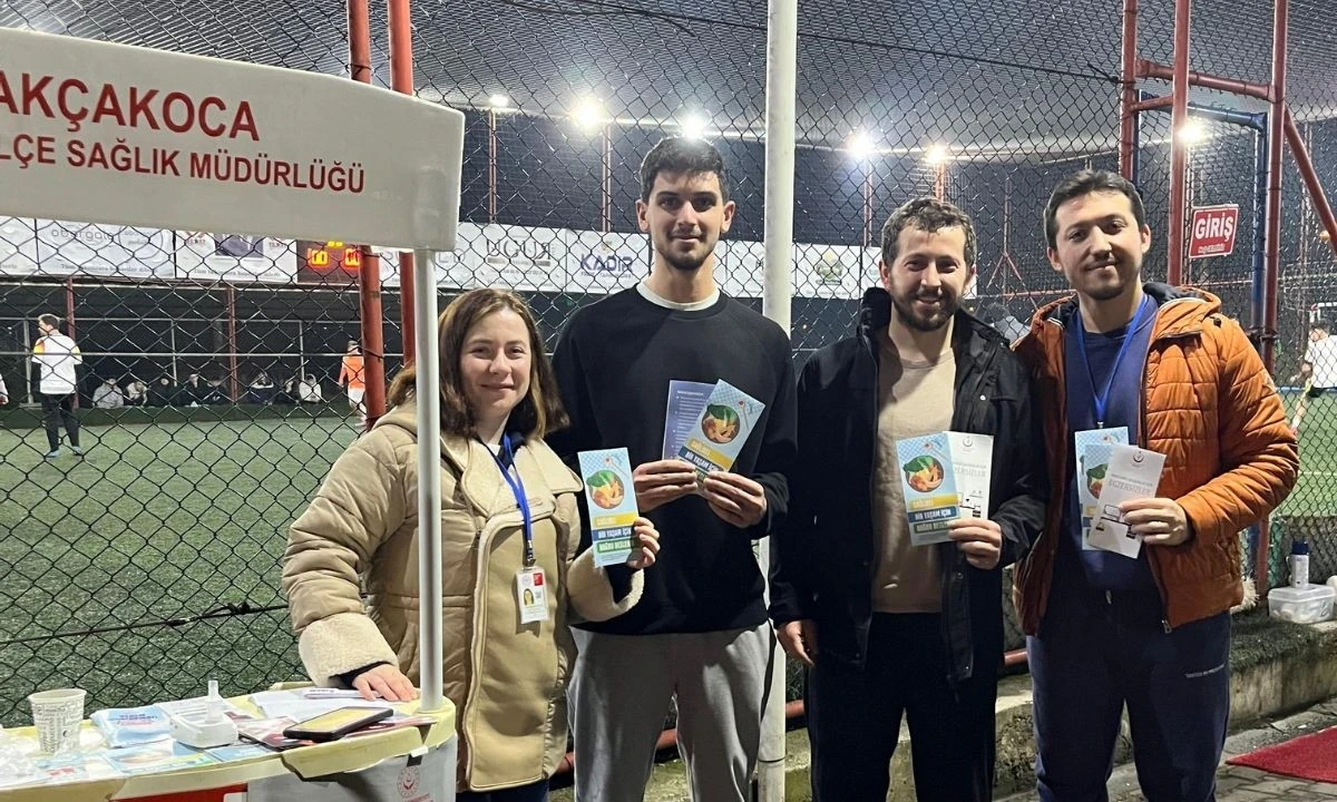 Düzce’nin Akçakoca ilçesinde, Ramazan’da Sağlık Programı kapsamında İlçe Sağlık Müdürlüğü ekipleri tarafından turnuva alanında bilgilendirme standı kuruldu.İlçede düzenlenen Ramazan turnuvası karşılaşmalarının oynandığı alanda kurulan stantta vatandaşlara sağlıklı yaşam, dengeli beslenme ve dikkat edilmesi gereken sağlık konularında önemli bilgiler aktarıldı. Ekipler tarafından dağıtılan broşürlerle farkındalık oluşturulurken, vatandaşların merak ettiği sorular da tek tek yanıtlandı.Yoğun ilgi gören stantta, özellikle Ramazan ayında beslenme düzenine dikkat edilmesi gerektiği vurgulanırken, spor ve sağlıklı yaşamın birlikte yürütülmesinin önemine dikkat çekildi.Yetkililer, toplum sağlığını korumaya yönelik benzer bilgilendirme çalışmalarının farklı alanlarda da devam edeceğini belirtti.