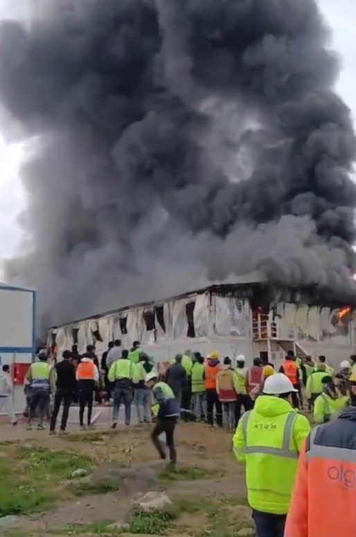 Olayın ardından ortaya çıkan yeni görüntülerde, konteynerlerin adeta bir alev topuna döndüğü, dumanların gökyüzünü kaplandığı ve işçilerin uyudukları yapının kül olmasına şahit olduğu anlar yer aldı.