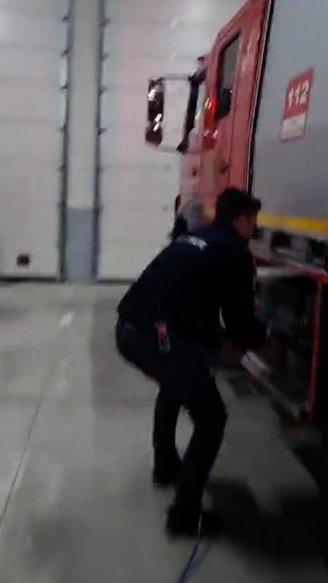 Anam anam benim ev" diyerek itfaiye aracına koştu