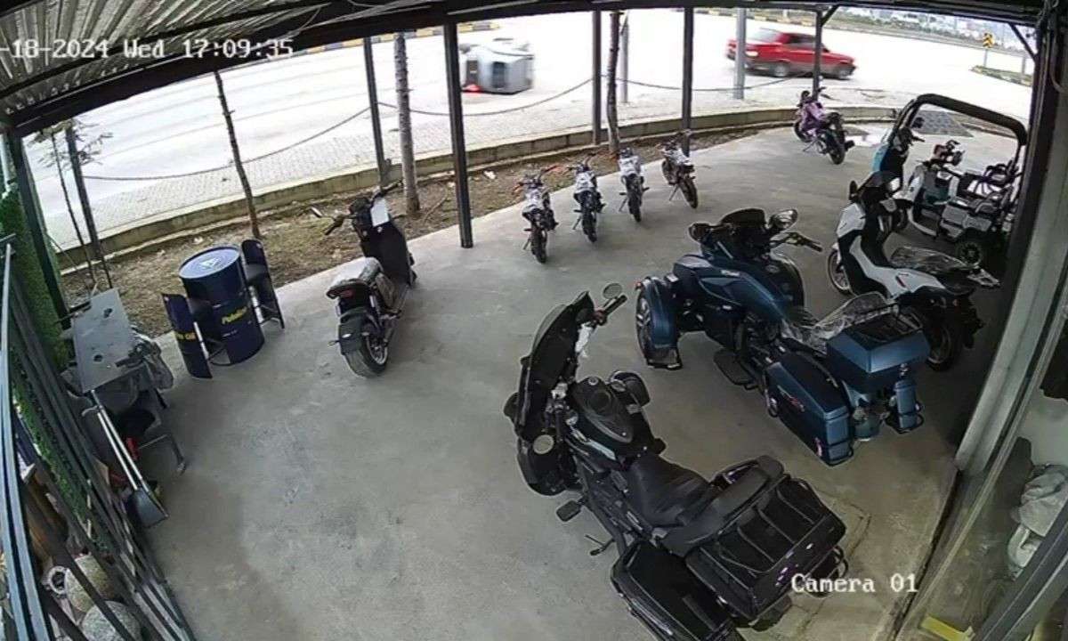 Karabük'te sürücüsünün kontrolünden çıkan elektrikli aracın devrilme anları güvenlik kamerasına yansıdı.