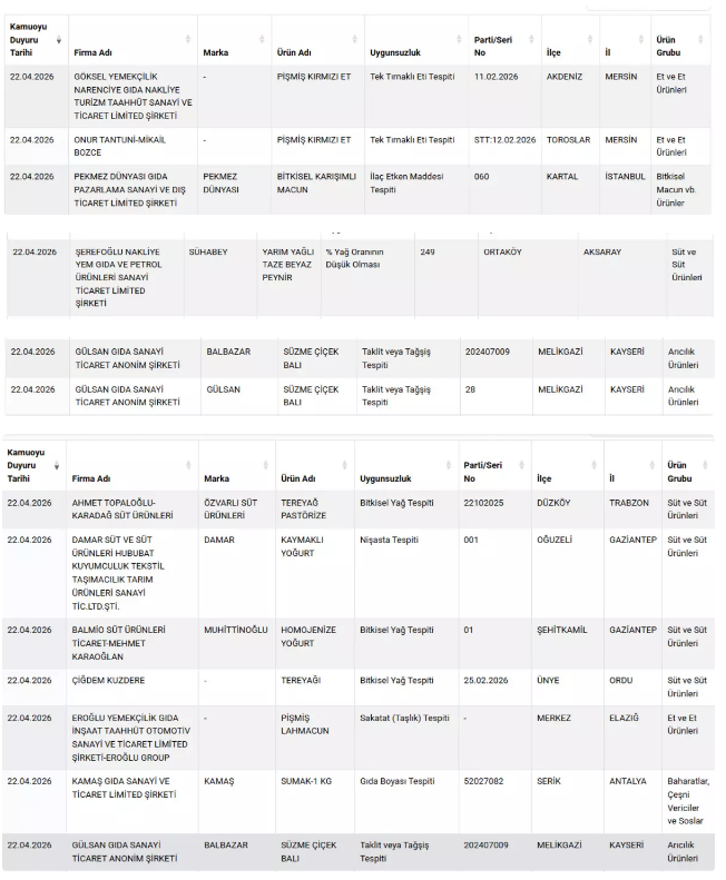 Mandıradan kasaba kadar Tarım ve Orman Bakanlığı denetimlerine devam ediyor. Gıdada uygunsuzluk yapan marka ve esnaf ise taklit-tağşiş listesinde yayımlanıyor. Bazen büyük markaların da girdiği liste dün bir kez daha güncellendi.