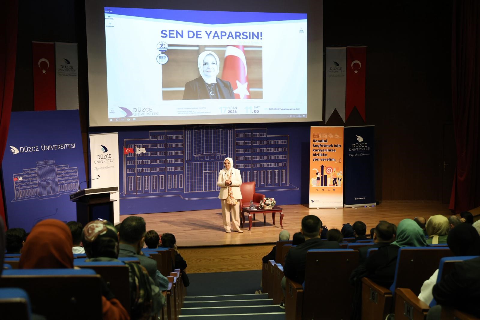 Düzce Üniversitesi’nde düzenlenen “Sen De Yaparsın!” söyleşi serisinin ilk konuğu olan AK Parti Düzce Milletvekili Ayşe Keşir, öğrencilere başarı, kariyer ve hayat üzerine önemli mesajlar verdi.