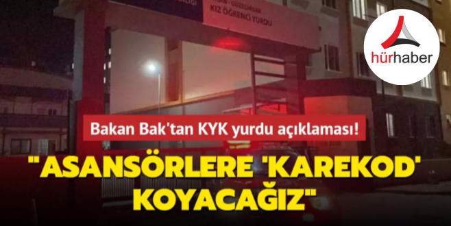Bakan Bak KYK yurtlarındaki asansörlerle ilgili yeni uygulamayı da duyurarak, "Tesislerimizdeki asansörlerimize karekod koyacağız. Herkes karekodu okutarak asansörün tüm bakım sürecini görebilecek." dedi.Aydın'daki KYK yurdunda arıza yapan asansörde üniversite öğrencisi Zeren Ertaş sıkışarak hayatını kaybetmesinin ardından diğer yurtlarda da kazalar gündeme geldi .Gençlik ve Spor Bakanı Osman Bak, konuyla ilgili açıklamada bulunarak, KYK yurtlarındaki yeni önlemleri duyurdu.