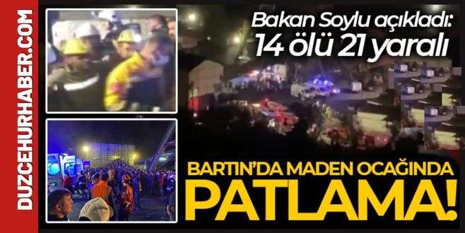 Bartın’ın Amasra ilçesinde maden ocağında meydana gelen patlamada 14 kişi hayatını kaybetti, 21 kişi yaralı olarak kurtarıldı. Maden ocağında yaşanan patlama sonrasında bölgeye Çalışma, Enerji ve İçişleri Bakanı intikal etti.