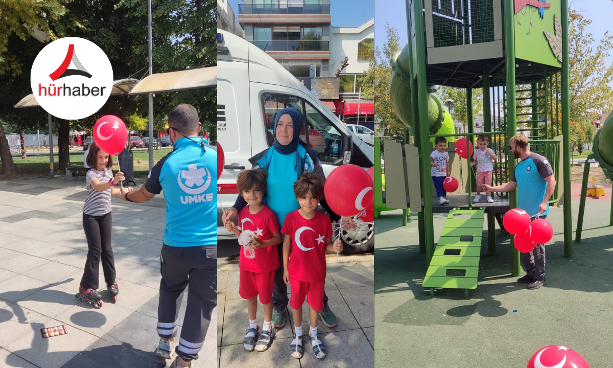 Büyük Zaferin 102. Yıldönümü ve 30 Ağustos Zafer Bayramı coşkusunu UMKE ekipleri, Türk Bayraklı balon dağıtarak çocuklarla birlikte yaşadı. UMKE ekiplerinden balonlarını alan çocuklar hem Türk Bayrağı’nın hemde bayramın gururunu yaşadı.Büyük Taaruzun sonunda gelen büyük zaferin 102. yıldönümü ve 30 Ağustos Zafer Bayramı coşkuyla kutlandı. Bu çerçevede yapılan etkinliklere doğal afetlerde özellikle sağlık, aram ve kurtarma faaliyetleri yapmak için Sağlık Bakanlığı’nca kurulan UMKE ekipleri de katıldı. Düzce İl Sağlık Müdürlüğü UMKE ekibi 30 Ağustos’a özel hazırlanan Türk Bayraklı balonları çocuklara dağıttı. Minik yüreklere bayrak sevgisini ve vatan aşkını yerleştirmek için yapılan etkinlikte UMKE ekiplerindeki abi ve ablalarından balonlarını alan çocuklar büyük mutluluk yaşadı.