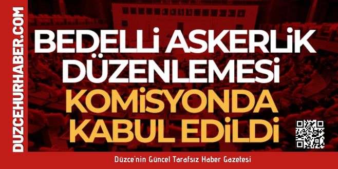 Bedelli askerlik düzenlemesi Milli Savunma Komisyonu'nda kabul edildi. Kabul edilen teklife göre, firar ve izi tecavüzü gibi hakkında inceleme yapılarının bulunmaması nedeniyle ifade almayı imkansız hale getiren zorunlu hallerde ilgilinin ifadesi alınmayacakYükümlü erbaş ve erlerden askeri araçları kullanmakla görevlendirilenler araç kazası nedeniyle harp malzemesine zarar vermek suçundan kast veya ağır kusur nedeniyle mahkum olmaları durumu haricinde araç kullanım nedeniyle meydana gelen zararı tazminle sorumlu olmayacaklar.