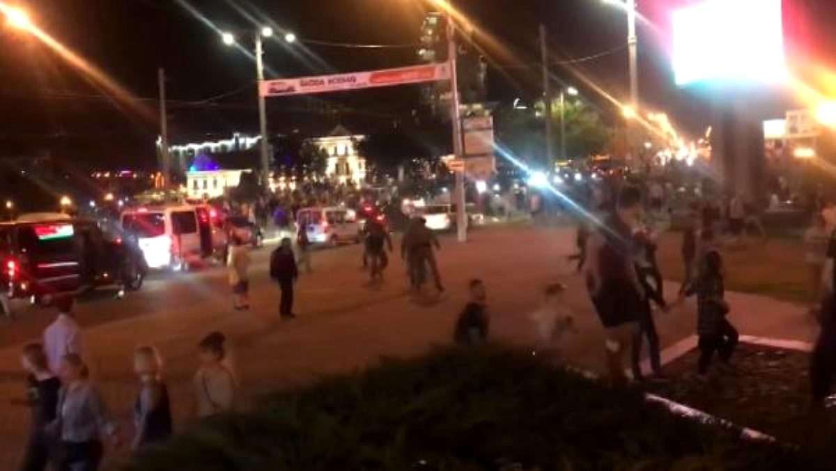 Minsk'te bir cezaevi aracının göstericilerin arasına dalması sonucu en az bir kişinin yaralandığı bildirildi. Ayrıca Maşerov ve Storojovskaya caddelerinin kesiştiği noktada patlamalar yaşandığı, gökyüzüne dumanlar yükseldiği iddia edildi.