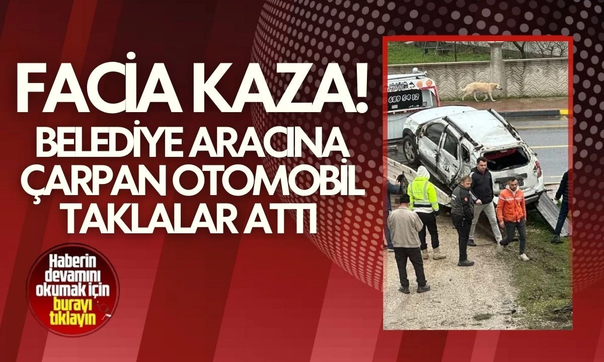 Belediye Aracına Çarpan Otomobil Taklalar Attı