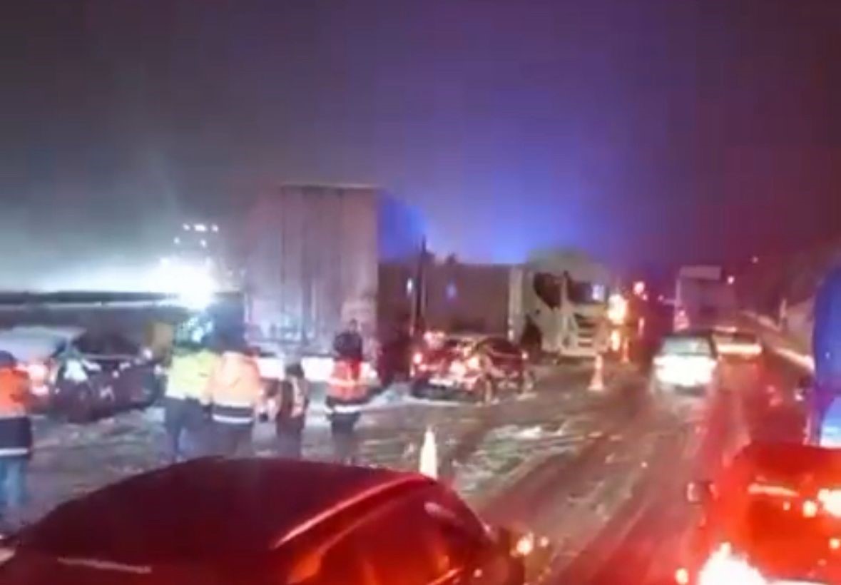 Bolu Dağı'nda etkili olan yoğun kar yağışı nedeniyle TEM Otoyolu Bolu Dağı Tüneli çıkışında 6 aracın karıştığı zincirleme trafik kazası meydana geldi.