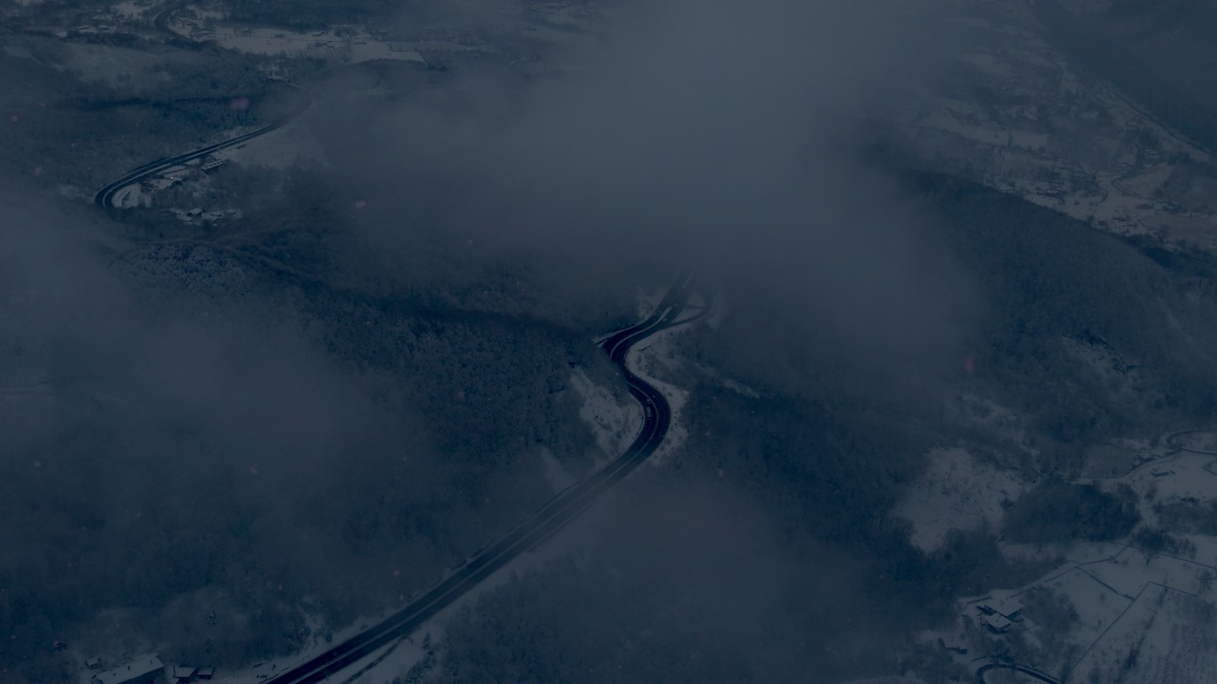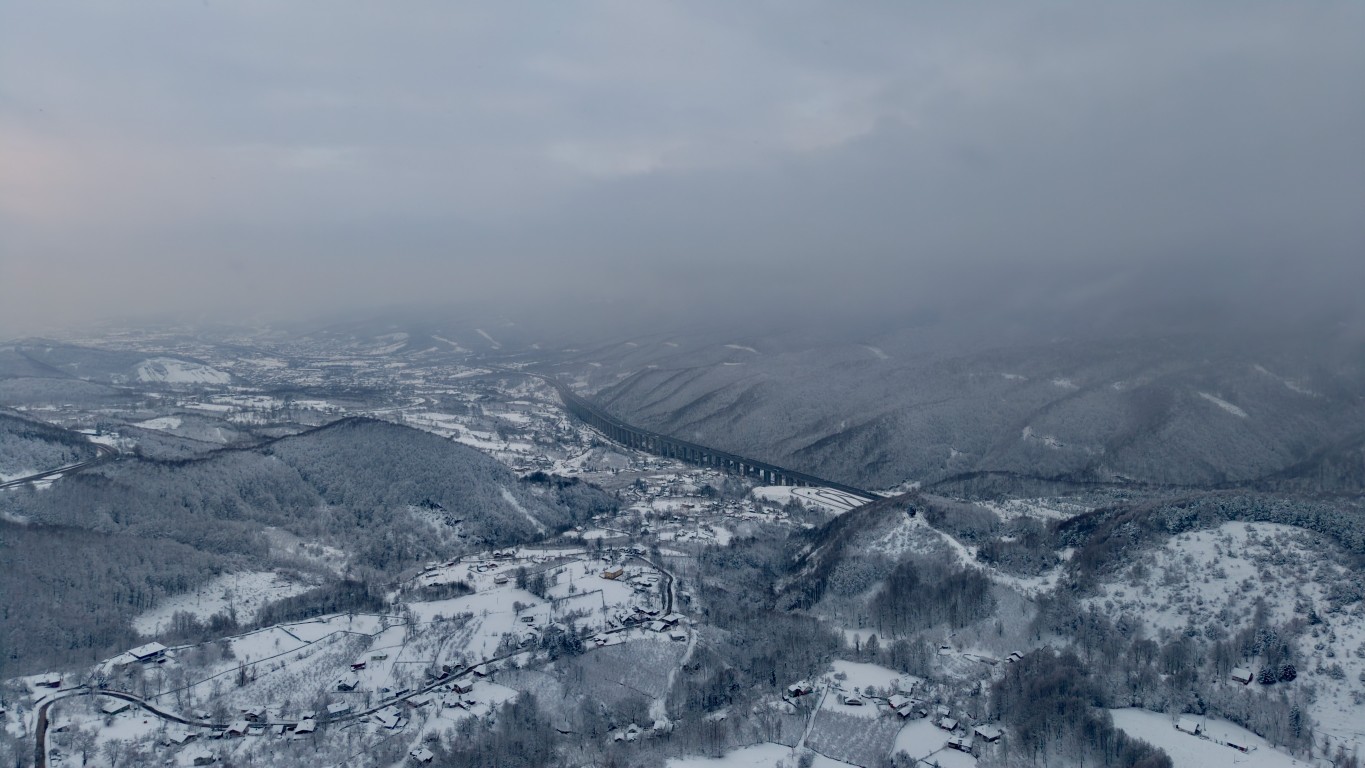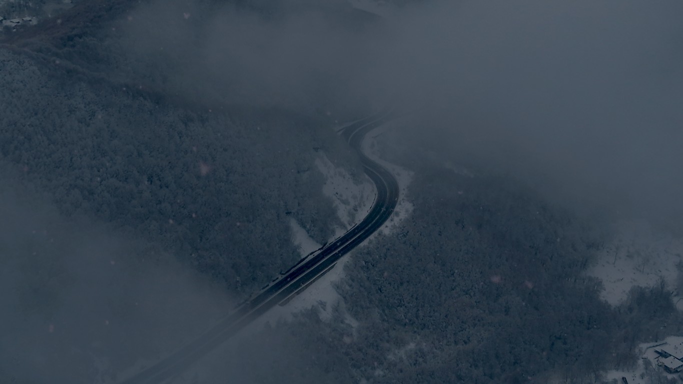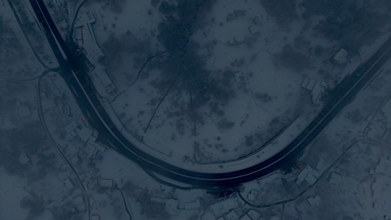 Bölgedeki çam ağaçlarının beyaz örtüyle bütünleşmesi ve iki ana ulaşım aksının aynı karede yer aldığı anlar havadan kayda alındı.