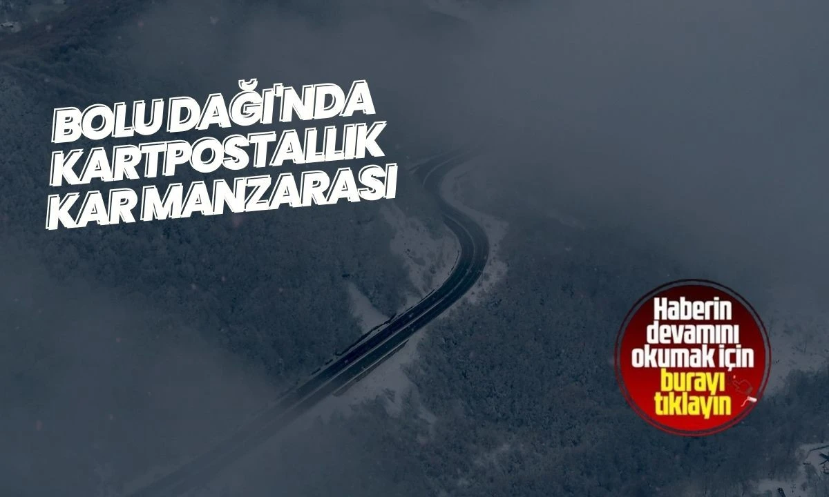 Türkiye'nin önemli geçiş güzergahlarından Bolu Dağı'nda kar yağışının ardından oluşan beyaz örtü havadan görüntülendi.