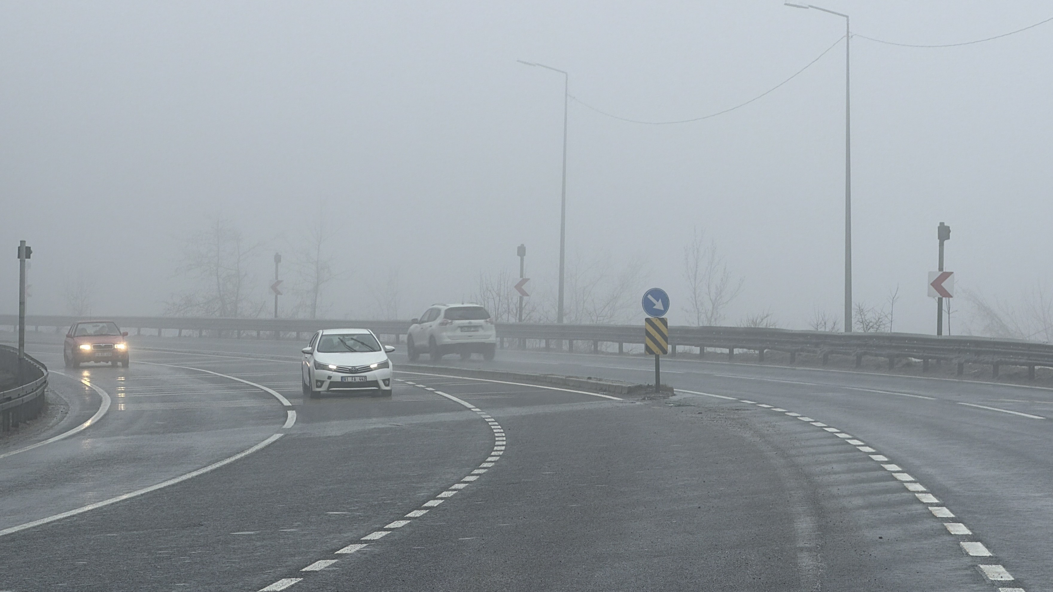 D-100 kara yolu ve Anadolu Otoyolu’nun Bolu Dağı geçişinde etkili olan sağanak yağış ve yoğun sis, sürücülere zor anlar yaşatıyor. Görüş mesafesinin yer yer 10 metreye kadar düşmesi, trafikte risk oluşturdu.Bölgede aralıklarla etkisini sürdüren olumsuz hava koşulları nedeniyle sürücüler, yolda yavaş ilerlemek zorunda kaldı.