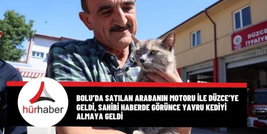 Bolu’da satılan arabanın motoru ile Düzce’ye geldi, sahibi haberde görünce yavru kediyi almaya geldi