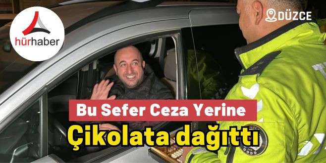 Düzce’de polis ekipleri yılın ilk denetiminde sürücülere bu sefer ceza yerine çikolata dağıttı.