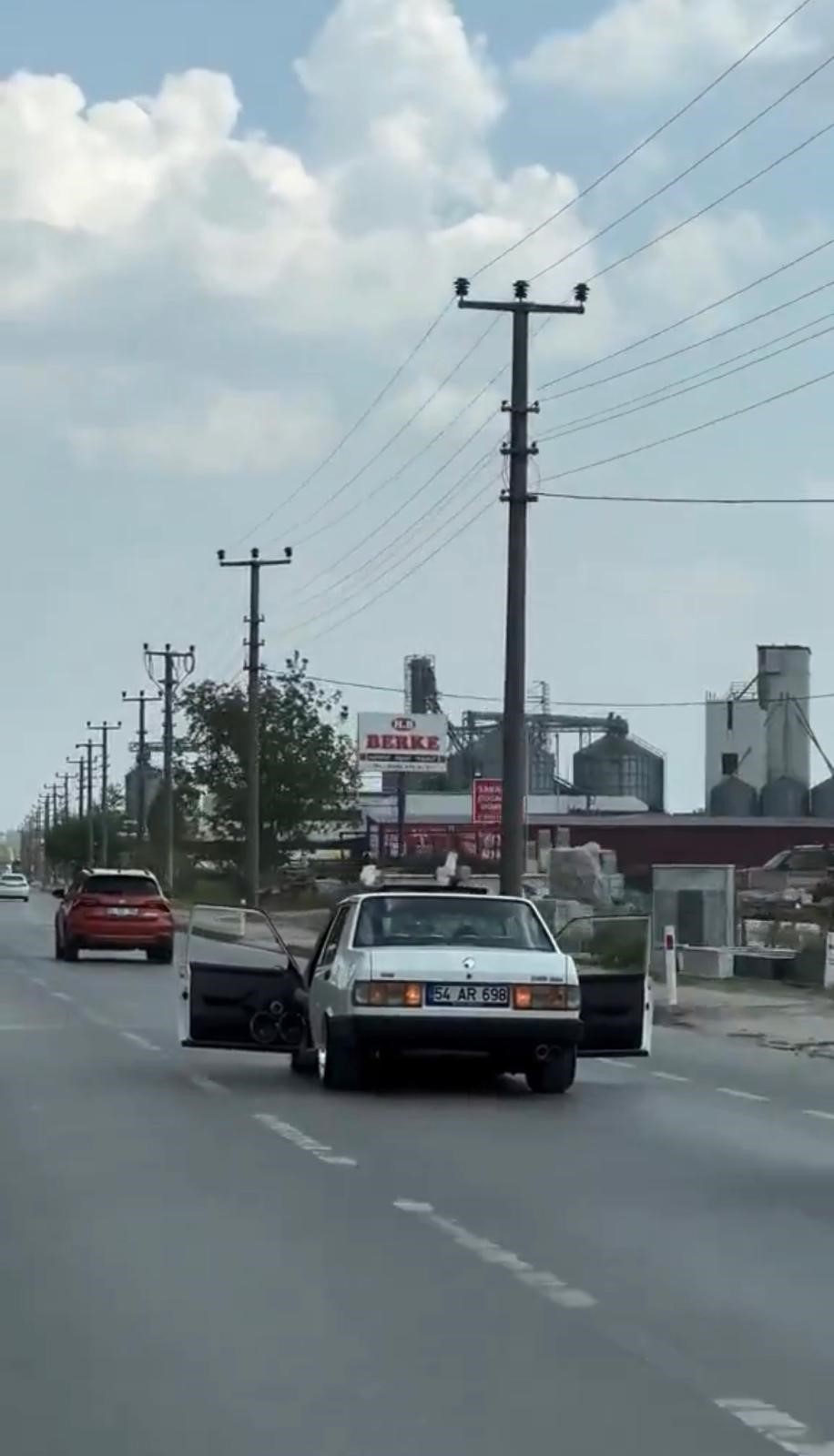 O anlar bir vatandaş tarafından cep telefonuyla görüntülenerek sosyal medyada, "Bu tipler illa sosyal medyada çıkınca mı ceza alacak. Bunu gören bir kamera bir polis yok mu" tepkisi ile paylaşıldı.Olay, Adapazarı Çevreyolu Caddesi'nde meydana geldi. 54 AR 698 plakalı Tofaş marka otomobil, seyir halindeyken hem sürücü hem de sağ ön yolcu kapıları açık şekilde ilerledi. Akıllara durgunluk veren görüntü ise cep telefonu kamerası ile saniye saniye kaydedildi. Akan trafikte yapılan ve tepki çeken umursamaz hareket, diğer sürücüleri de tehlikeye attı. Araçtan yükselen yüksek sesli müzikle birlikte yapılan tehlikeli yolculuğu sosyal medyadan paylaşan bir vatandaş, "Bu tipler illa sosyal medyada çıkınca mı ceza alacak? Bunu gören bir kamera, bir polis yok mu?" ifadeleriyle yaşanan duruma tepki gösterdi.