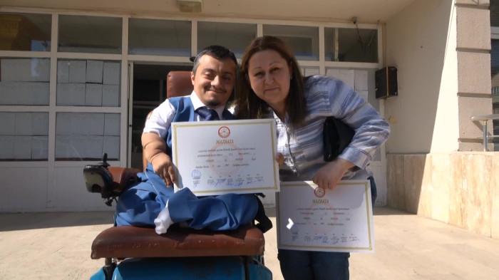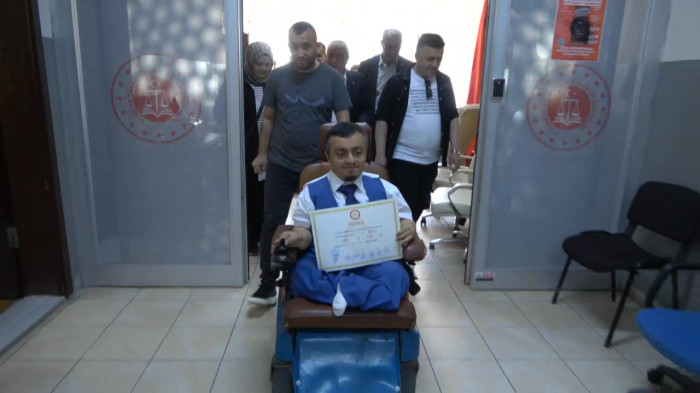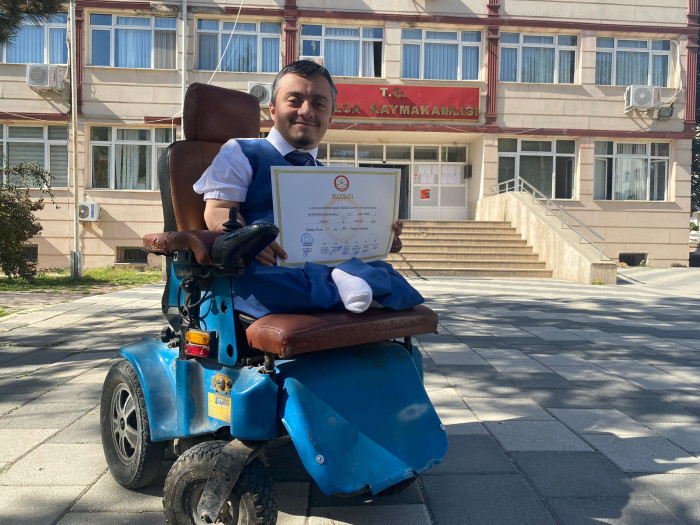 Cam kemik hastası bedensel engelli özel birey mazbatasını aldı