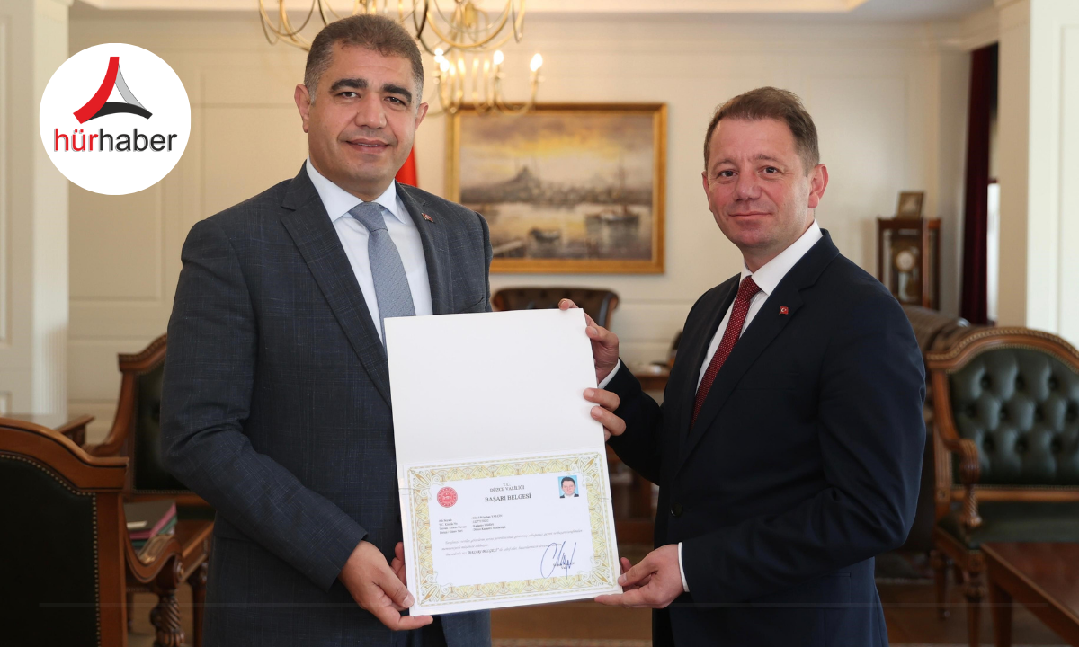 Karaman Kadastro Müdürü olarak atanan Cihad Bilgehan’a Düzce Valisi Selçuk Aslan’dan başarı belgesi.