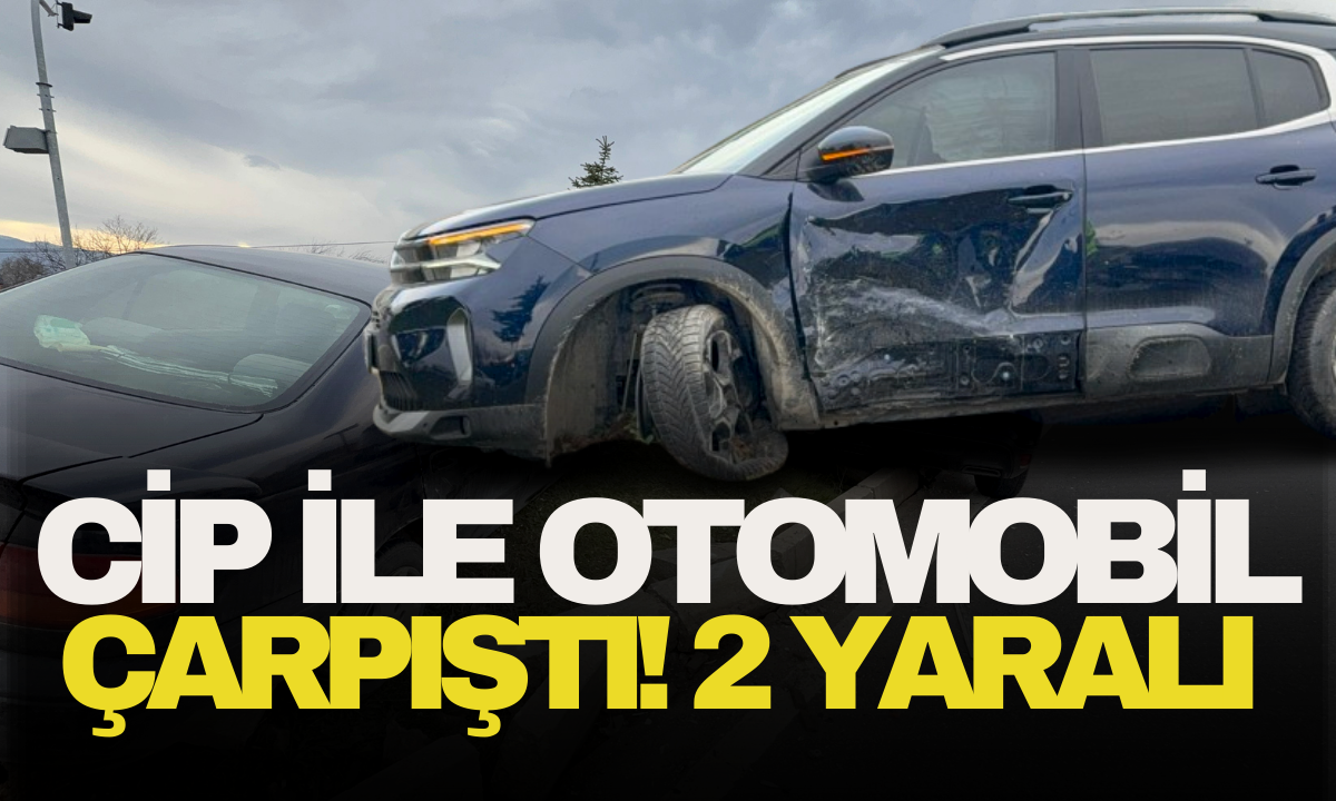 Düzce'de cip ile otomobilin çarpıştığı kazada 2 kişi yaralanırken, araçlar refüje çıkarak durabildi.