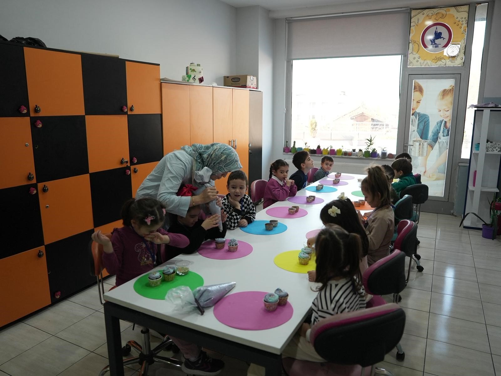 Düzce Belediyesi Belka Kreş ve Gündüz Bakımevinde eğitim gören minikler, Düzce Belediyesi Çocuk Üniversitesi tarafından 5-14 yaş arası çocuklara sunulan farklı atölyeleri yerinde deneyimleme imkanı buldu. İlk olarak çocuk üniversitesini gezen minikler daha sonra mutfak atölyesinde muffin yapmak için kolları sıvadı.