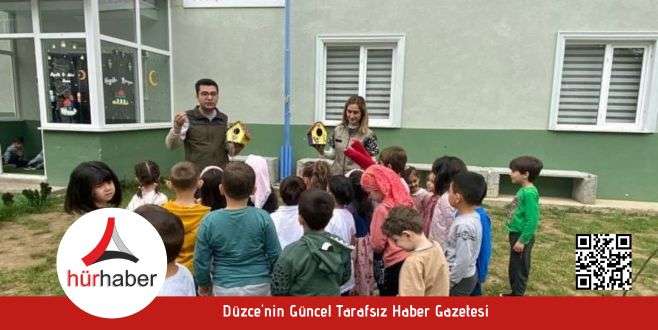 Düzce Doğa Koruma ve Milli Parklar Şube Müdürlüğü veteriner hekimleri tarafından 4-6 yaş gurubu öğrencilere doğa ve hayvan sevgisi aşılanması, bu sevginin nesilden nesile aktarılması için eğitim verildi.Düzce Doğa Koruma ve Milli Parklar Şube Müdürlüğüne bağlı veteriner hekimler, Ertan Nihat Yılmaz kuran kursu 4-6 yaş grubu öğrencilerine doğa ve hayvan sevgisi aşılanması, bu sevginin nesilden nesile aktarılması ile ilgili bir eğitim gerçekleştirdiler. Yapılan eğitim sonrasında ise öğrencilerin sevgiyle renklendirdiği kuş evleri, minik dostlarını misafir etmek üzere okulun bahçesinde uygun yerlere yerleştirildi.Çocuklar minik hayvanlara büyük ilgi gösterdi.