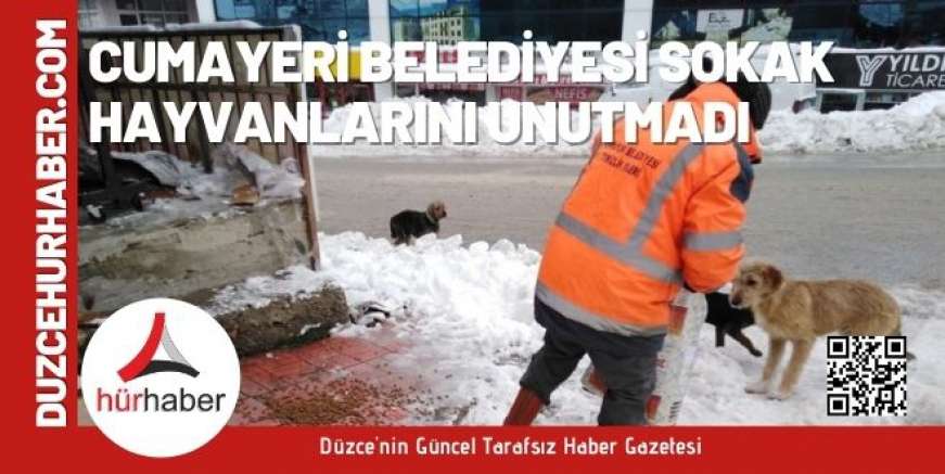 Kar yağışı nedeniyle yem ve su bulmakta zorlanan sokak hayvanlarını unutmayan belediye ekipleri halktan da teşekkür aldılar.Cumayeri Belediye Başkanı Mustafa Koloğlu, "Bir yandan hayvan barınağı inşaatımız için çalışmalar devam ederken bir yandan da ilçe genelinde bulunan bazı noktalar ekiplerimiz tarafından sürekli kontrol edilerek yem bırakılıyor. Diğer yandan merkeze uzak alanlarda yaşayan ve yem bulamayan sokak canları için ise sürekli olarak doğaya yem bırakılıyor" dedi.