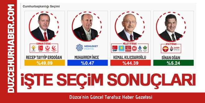 Cumhurbaşkanı ve 28. Dönem Milletvekilli seçimleri sonuçları Düzce Haber