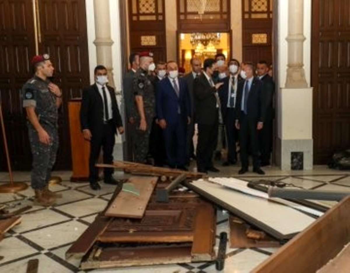 Cumhurbaşkanı Yardımcısı Oktay ve Bakan Çavuşoğlu, görüşme öncesi patlamanın meydana geldiği bölgeleri ziyaret etti. - BEYRUT