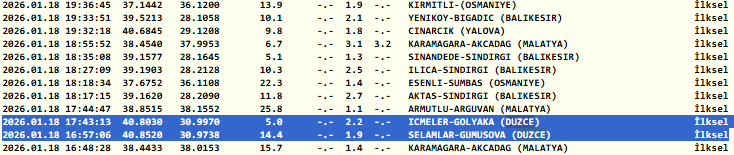 Düzce'nin Gümüşova ve Gölyaka ilçelerinde, peş peşe küçük çaplı depremler vatandaşlarda hafif endişeye yol açtı.