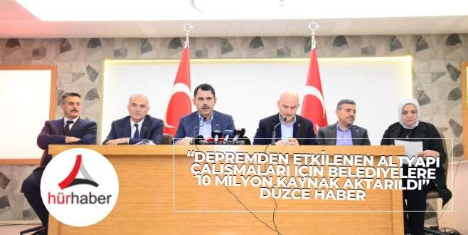 “Depremden etkilenen altyapı çalışmaları için belediyelere 10 milyon kaynak aktarıldı” Düzce Haber