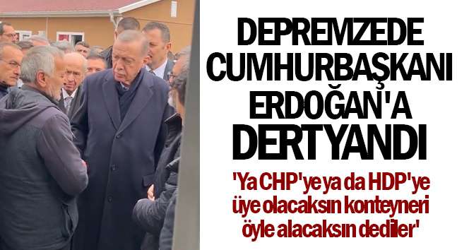 Depremzede Erdoğan'a dert yandı: 'Ya CHP'ye ya da HDP'ye üye olacaksın konteyneri öyle alacaksın dediler'