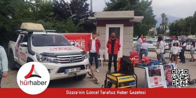 Düzce Arama Kurtarma Derneği (DAKE) Antalya’da düzenlenen depremzedelere yardım panayırında afet farkındalığı oluşturmak için stant açtı.Merkezi Düzce’de olan DAKE’nin Antalya temsilciliği, depremzedelere yardım panayırında afet farkındalığı oluşturmak amacıyla bir stant açtı. DAKE gönüllüleri etkinlikte hem afetler konusunda bilgi verdi hem de arama kurtarma malzemelerini tanıttı. Stant öğrencilerin yoğun ilgisi ile karşılaştı.