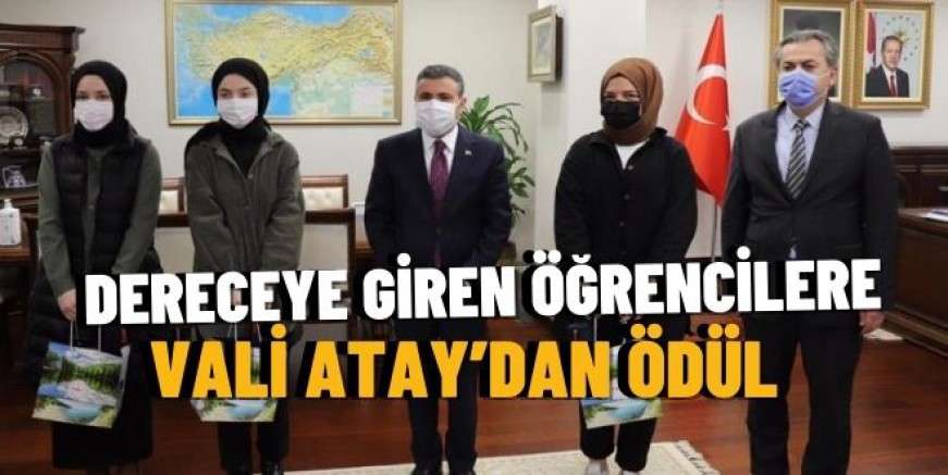 Valilikte düzenlenen ödül programında Vali Cevdet Atay’ın yanı sıra İl Milli Eğitim Müdürü Murat Yiğit ve dereceye giren öğrenciler katıldı.