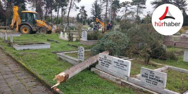 Şiddetli fırtına şehir mezarlığında hasara yol açtı