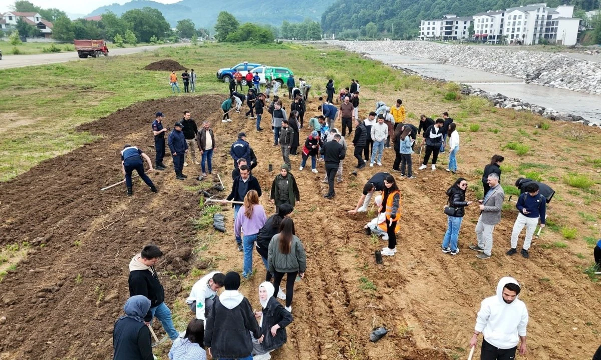 Düzce Üniversitesi (DÜ) öğrencileri sel felaketinden etkilenen ve ıslah çalışmaları tamamlanan Uğur Suyu Deresi çevresine fidan dikildi ve çevre temizliği gerçekleştirildi.