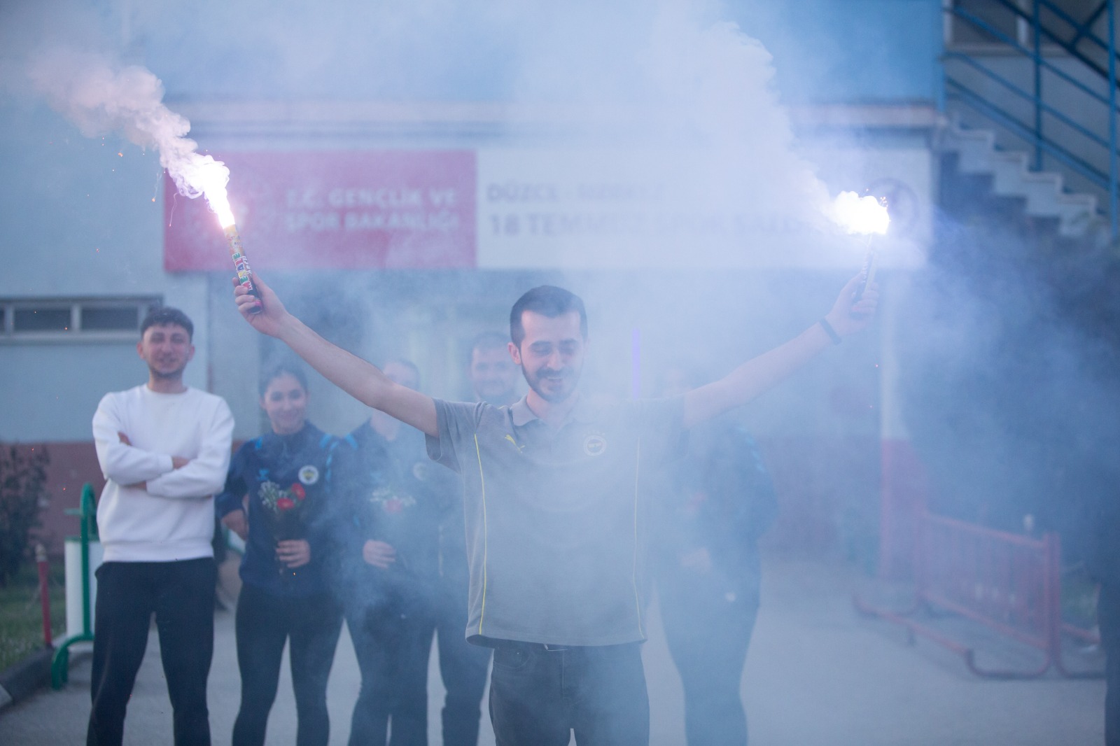 Şampiyon takım, müsabakaların ardından Düzce’ye dönüşlerinde 18 Temmuz Kapalı Spor Salonu önünde kulüp yöneticileri, sporcuların aileleri ve vatandaşlar tarafından coşkulu şekilde karşılandı.
