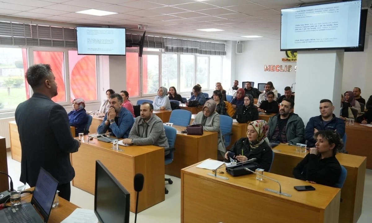 Düzce Belediyesi tarafından düzenlenen hizmet içi eğitim kapsamında, personel takip sistemleri ve iş süreçlerinin daha etkin yürütülmesi için önemli bilgilendirmeler yapıldı.