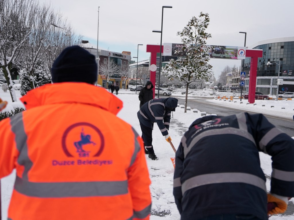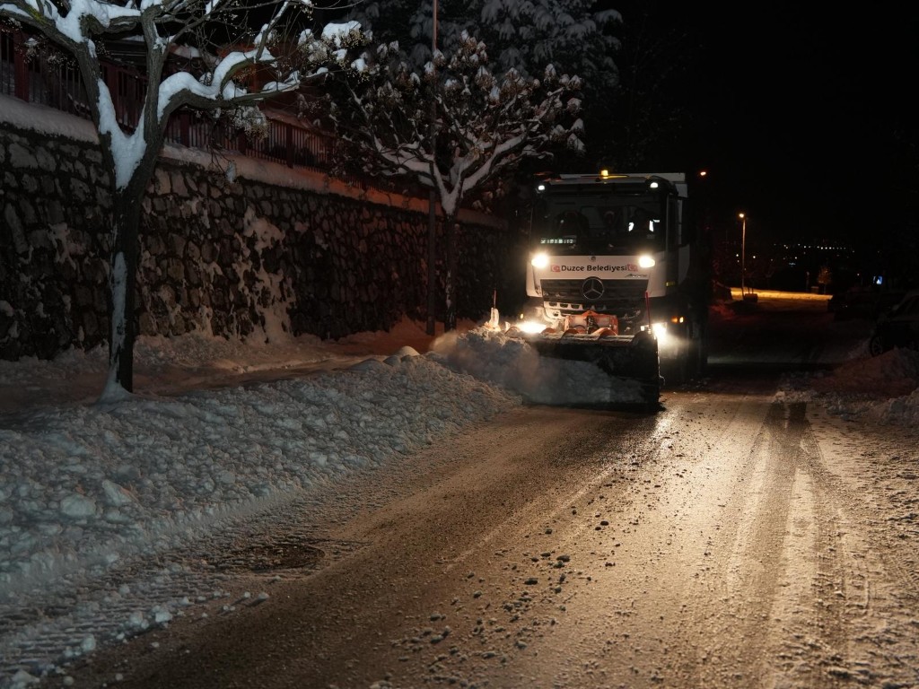 Düzce Belediyesi, kar yağışı süresince fedakârca görev yapan tüm personeliyle, zorlu kış şartlarında vatandaşların güvenliği ve konforu için çalışmalarını kararlılıkla sürdürmeye devam ediyor.
