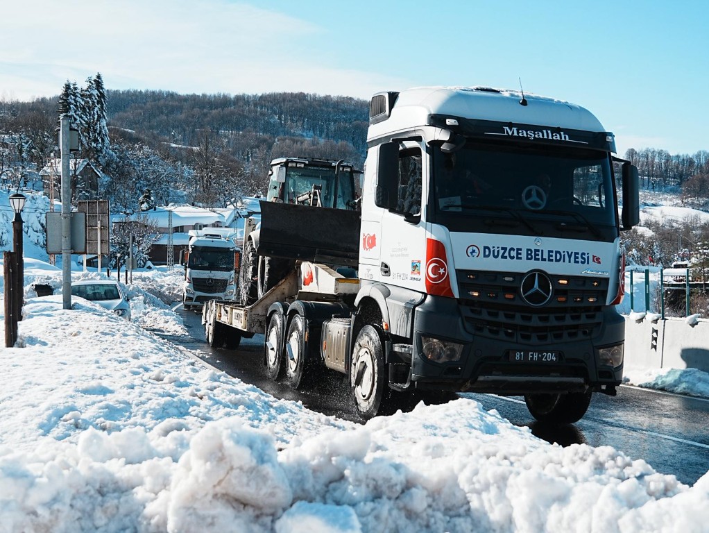Düzce Belediyesi ayrıca komşu il Bolu’ya ve Düzce’nin Yığılca ilçesine karla mücadele araçlarıyla destek vererek dayanışma örneği sergiledi.