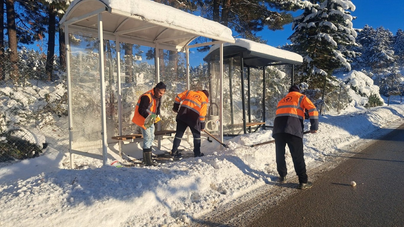 Ana arterler başta olmak üzere tüm yollarda kar küreme ve tuzlama çalışmaları yapılırken, kaldırımlar, duraklar ve yaya köprüleri de ekipler tarafından temizlendi.