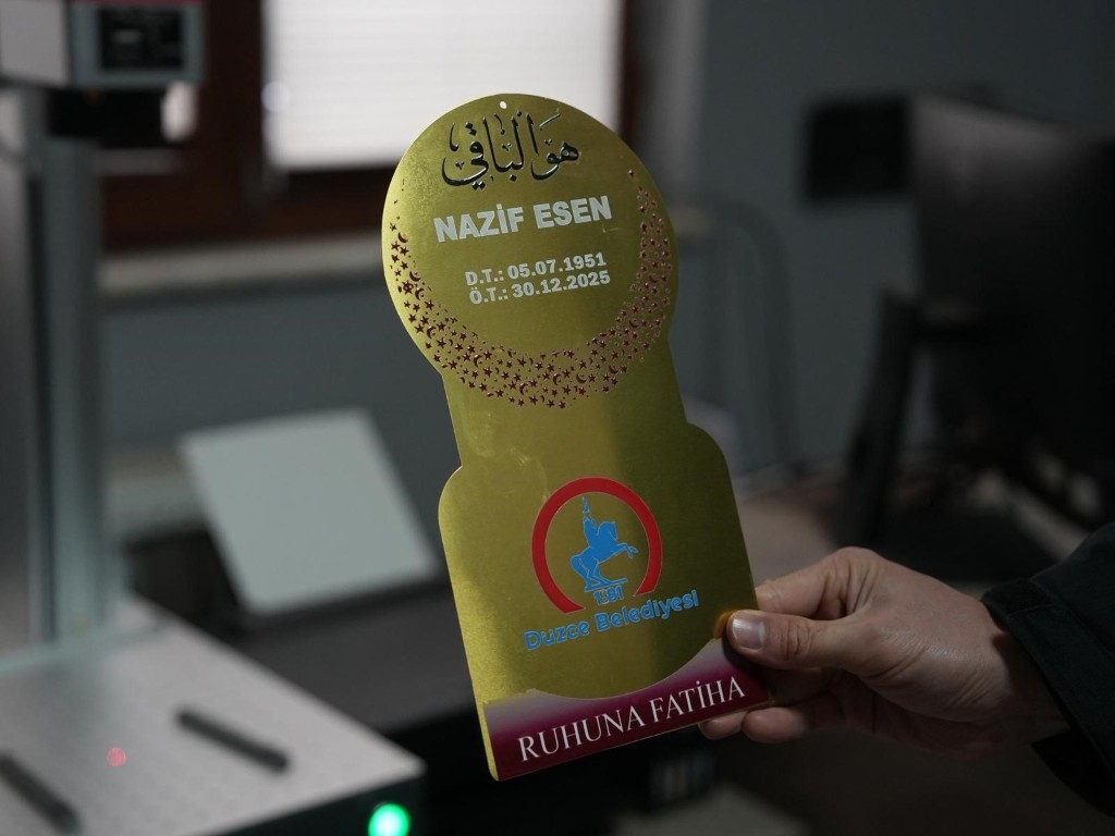 Düzce Belediyesi Mezarlıklar Müdürlüğü, defin hizmetlerinde yaşanan bir soruna da kalıcı çözüm getirdi. Daha önce yalnızca ahşap mezar başlıkları kullanılırken, müdürlük bünyesine kazandırılan lazer baskı makinesi sayesinde metal plakalar üzerine baskı yapılmaya başlandı.
