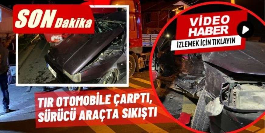 Tır otomobile çarptı, sürücü araçta sıkıştı.Yaralı sürücü telefonla yakınlarına haber verdi