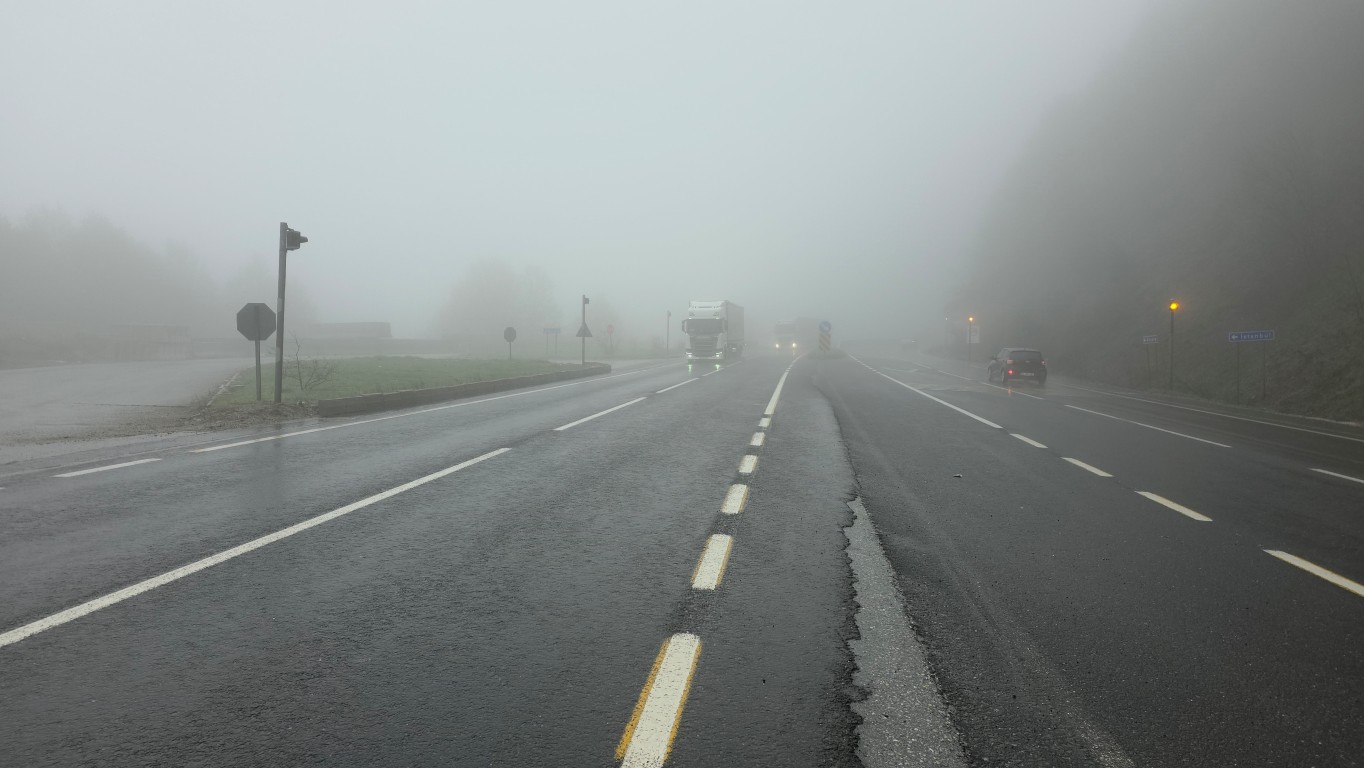 Yoğun sis nedeniyle görüş mesafesi yer yer ciddi oranda azalırken, bazı noktalarda göz gözü görmez hale geldi.Sürücüler, olumsuz hava şartları nedeniyle düşük hızla ilerlemek zorunda kaldı.